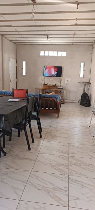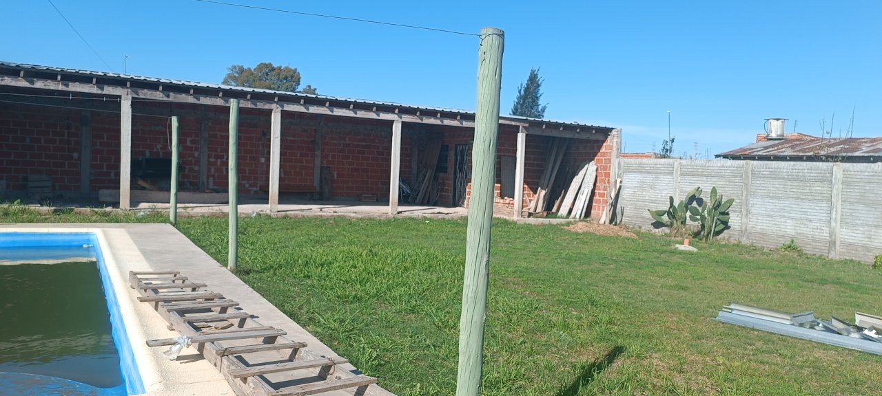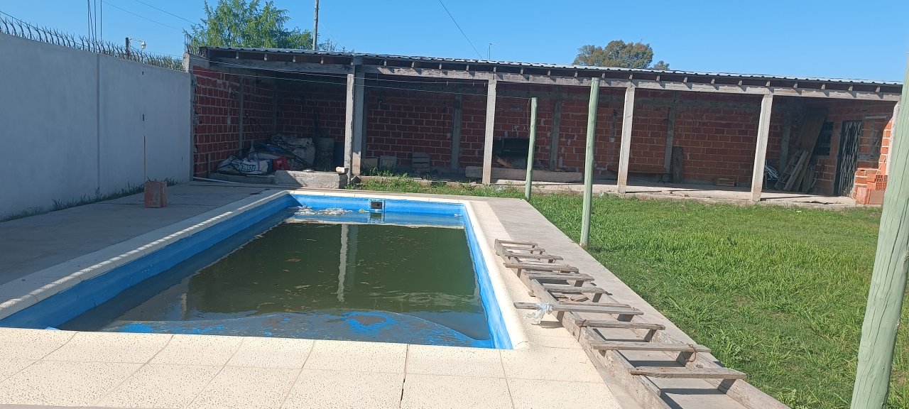Casa de dos dormitorios amplios, living cocina comedor integrada, baño. Pileta de fibra, En el fondo quincho semicerrado, con galpon. Todo el lote cercado con paredon. Lote de 17 mts x 35 mts. Entrada de vehiculo. Ideal para el descanso.